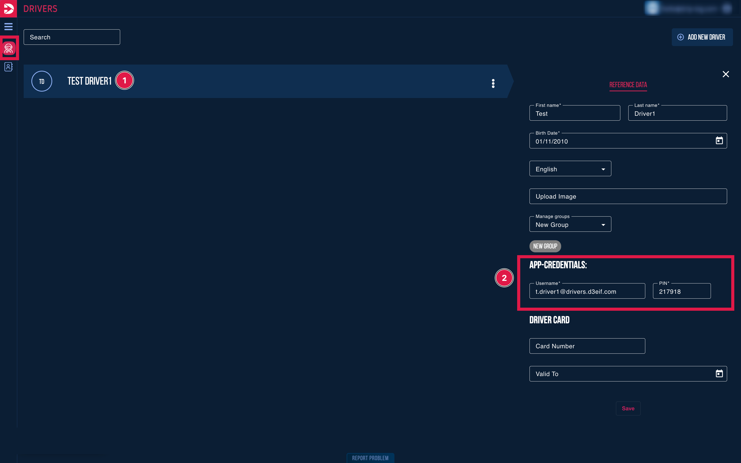 Sobald Sie den Fahrer gefunden haben, klicken Sie auf sein Profil und überprüfen Sie im geöffneten Infobereich, ob die erstellten Anmeldeinformationen mit denen übereinstimmen, die der Fahrer zum Einloggen in die App verwendet.
