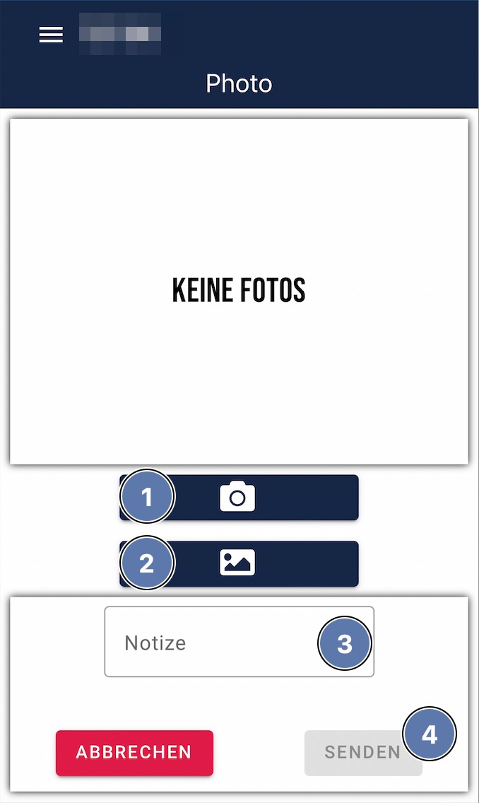 Klicke auf “SENDEN” (4) um das Foto oder die Datei abzuschicken.