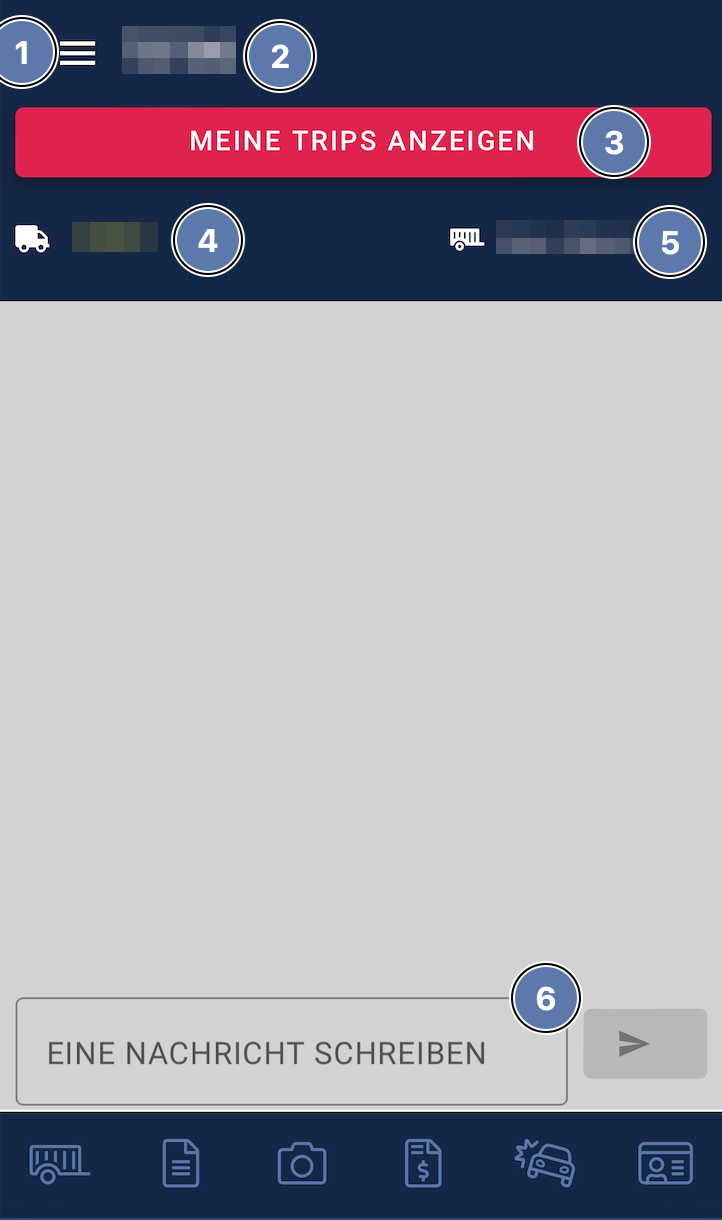 Im unteren Bereich (6) der Übersicht hat der Fahrer die Möglichkeit eine Nachricht zu schreiben und somit einen Chat zu beginnen oder fortzusetzen.