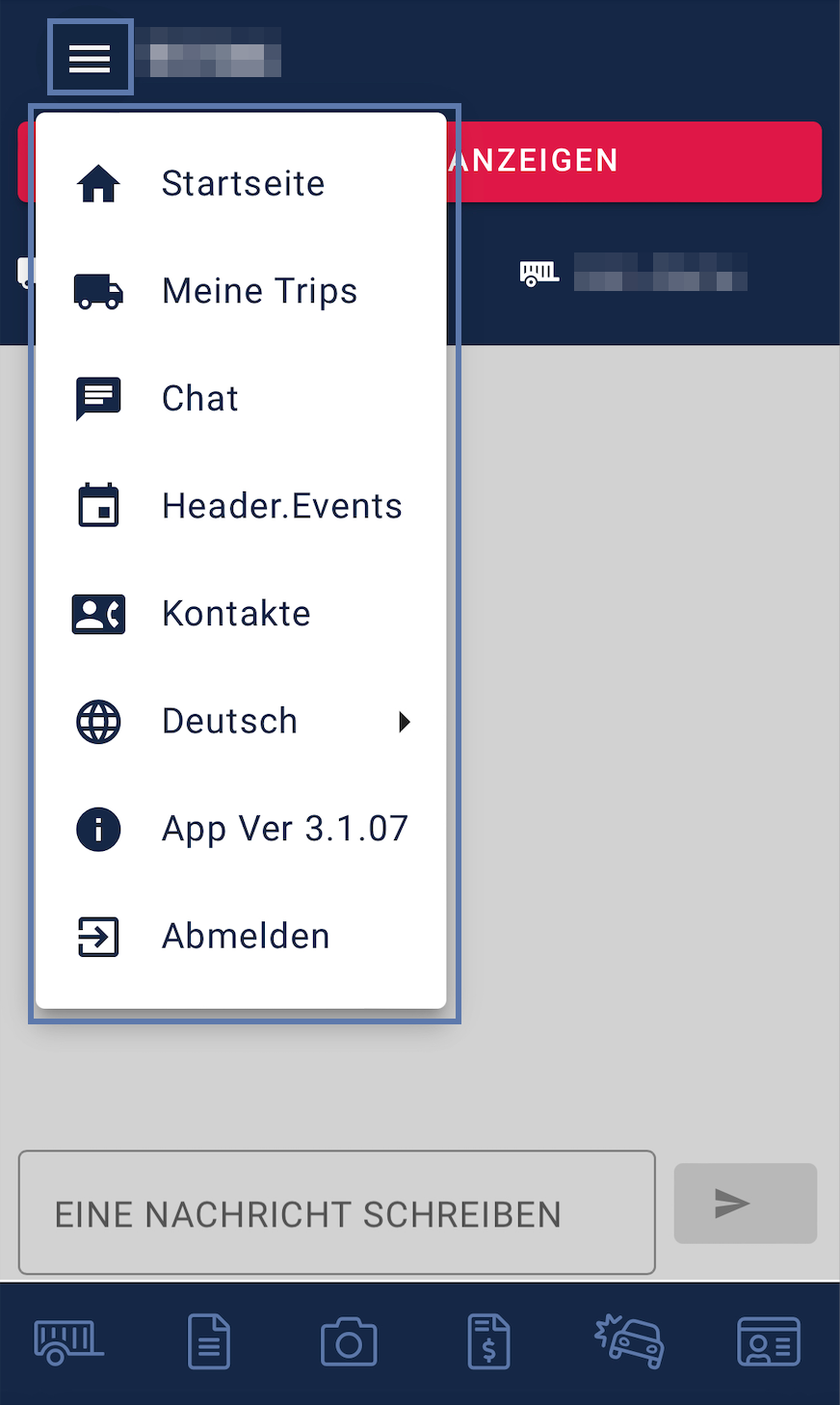 Von hier aus kann man immer direkt zum Startbildschirm, zum Chat, zu den Trips, Kontakten oder zum Ausloggen wechseln.