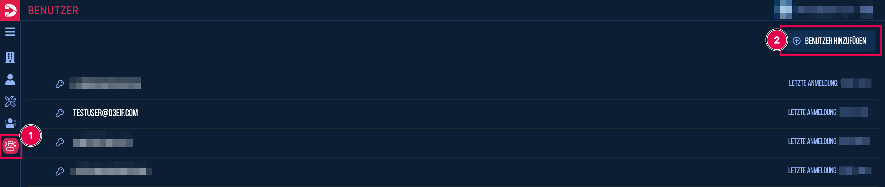 Um einen neuen Benutzer hinzuzufügen, wählen Sie die dementsprechend benannte Schaltfläche aus (2).