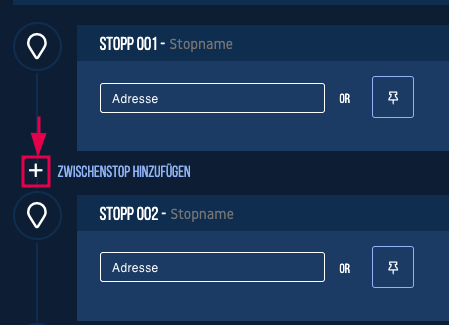 Um weitere Stopps hinzuzufügen, (z.B. einen 3. Stopp) gehen Sie vor, wie oben beschrieben.