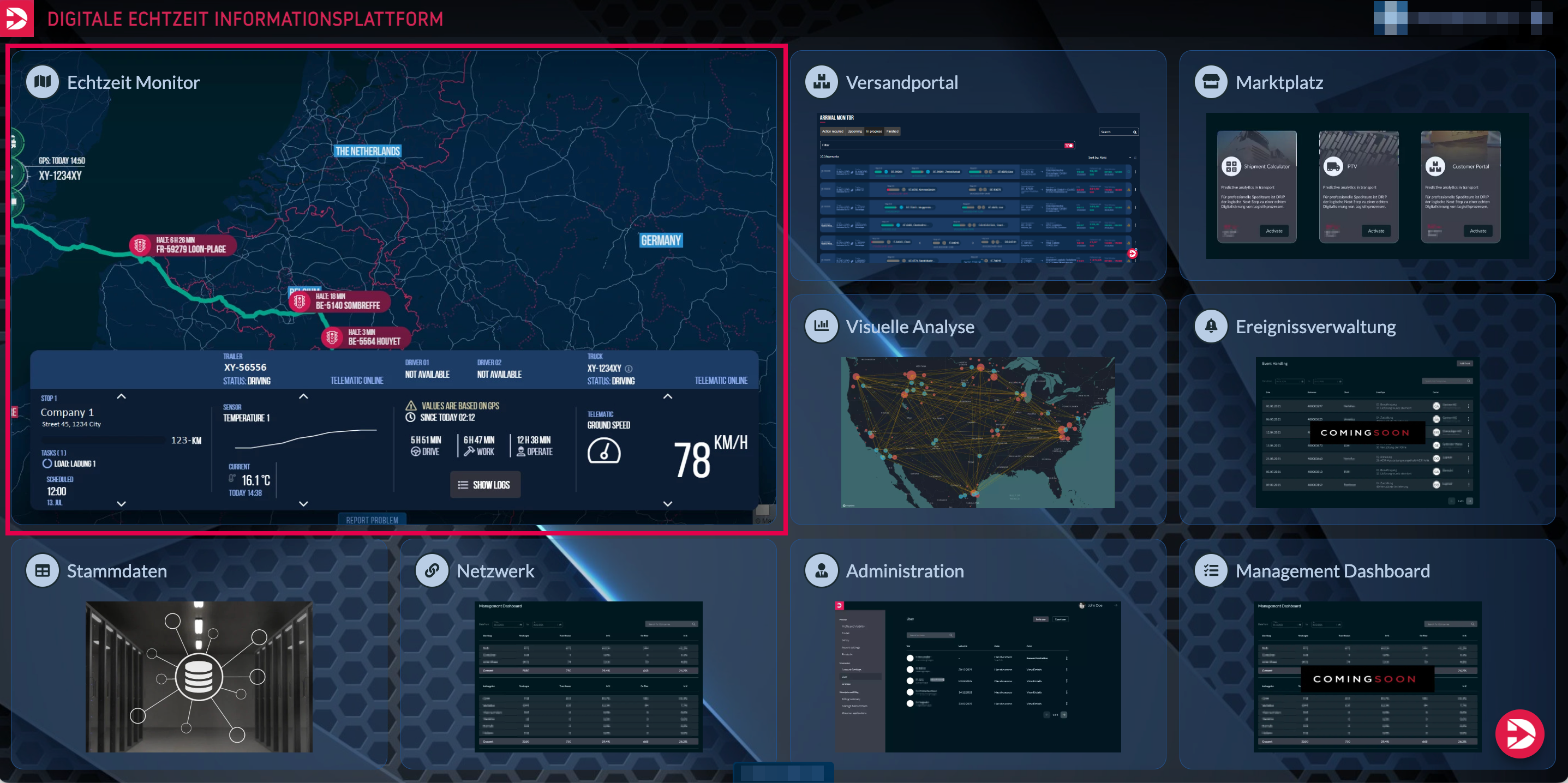 Daraufhin öffnet sich die Asset Liste mit einer Karte in der Übersicht, welche die Assets mit ihrer aktuellen Position darstellt.