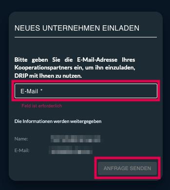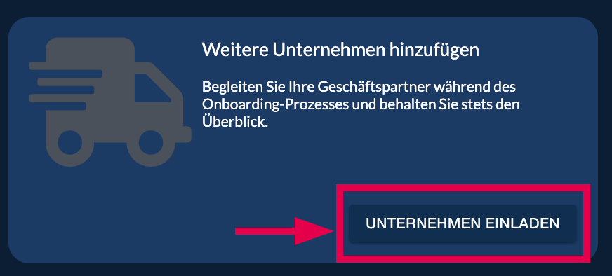 Um sich dann mit einem Unternehmen zu vernetzen, wählen Sie das Feld "Unternehmen einladen" (3) aus. (Hierfür muss die E-Mail-Adresse des gewünschten Unternehmens bekannt sein)