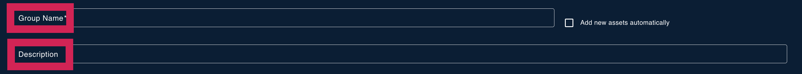 You can change the name and description of the group. If you tick the "add new assets automatically" box, all new assets are automatically added to this group.