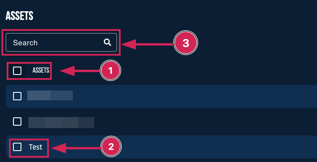 The search function (3) can be used to find individual assets more quickly.