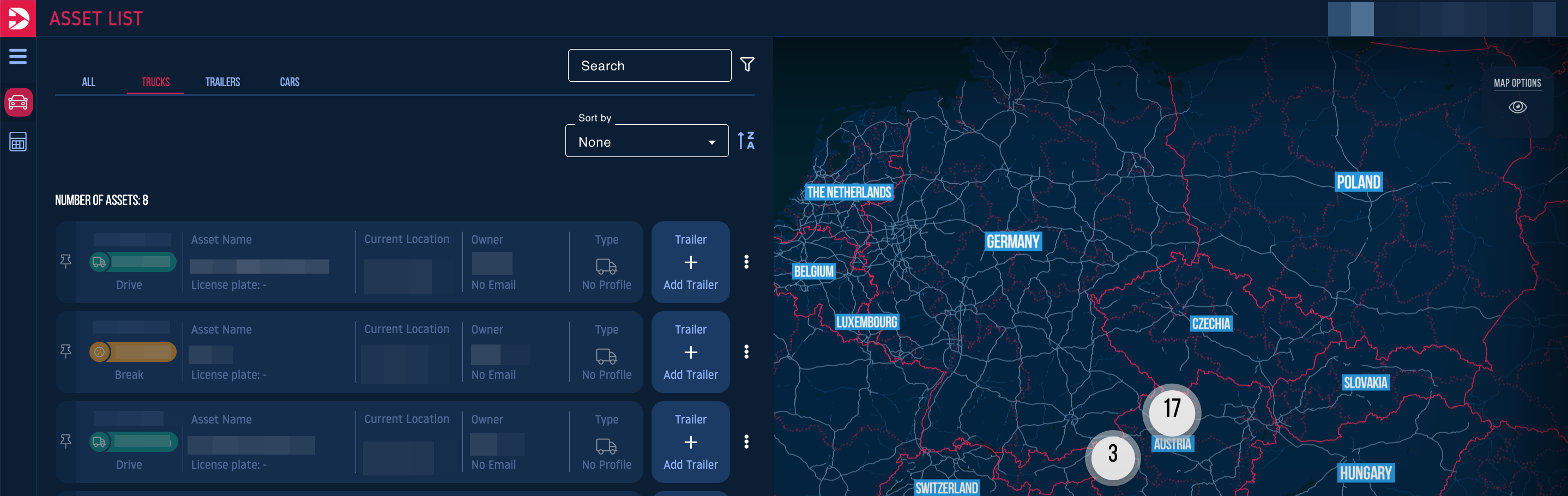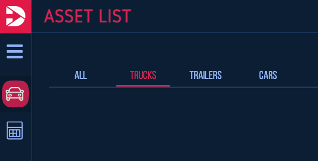 Next, click on the top car - icon in the sidebar for the asset list.