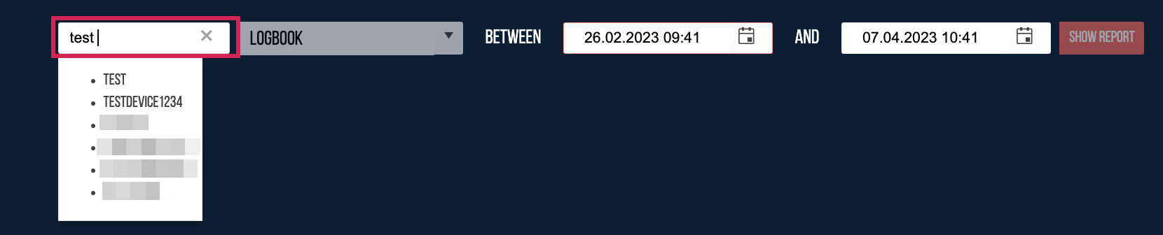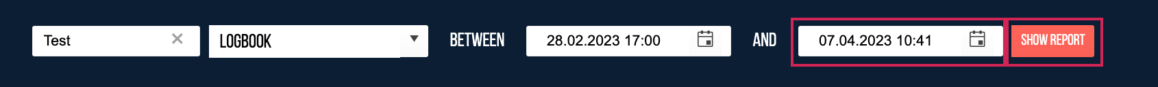 In the next step, you need to enter the end date and time of the period (as you did with the start date before) and subsequently press the "show report" button.